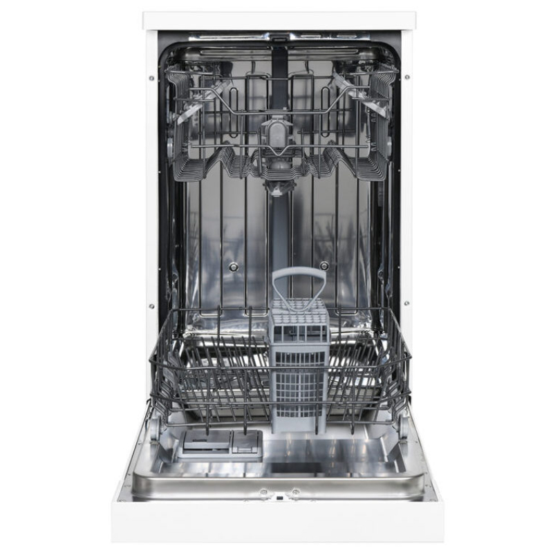Estética blanca con 2 bandejas y cesta de cubiertos. Sistema de control electrónico con Display LED con 6 programas de lavado y funciones para garantizar el mejor resultado y cuidado de la vajilla.