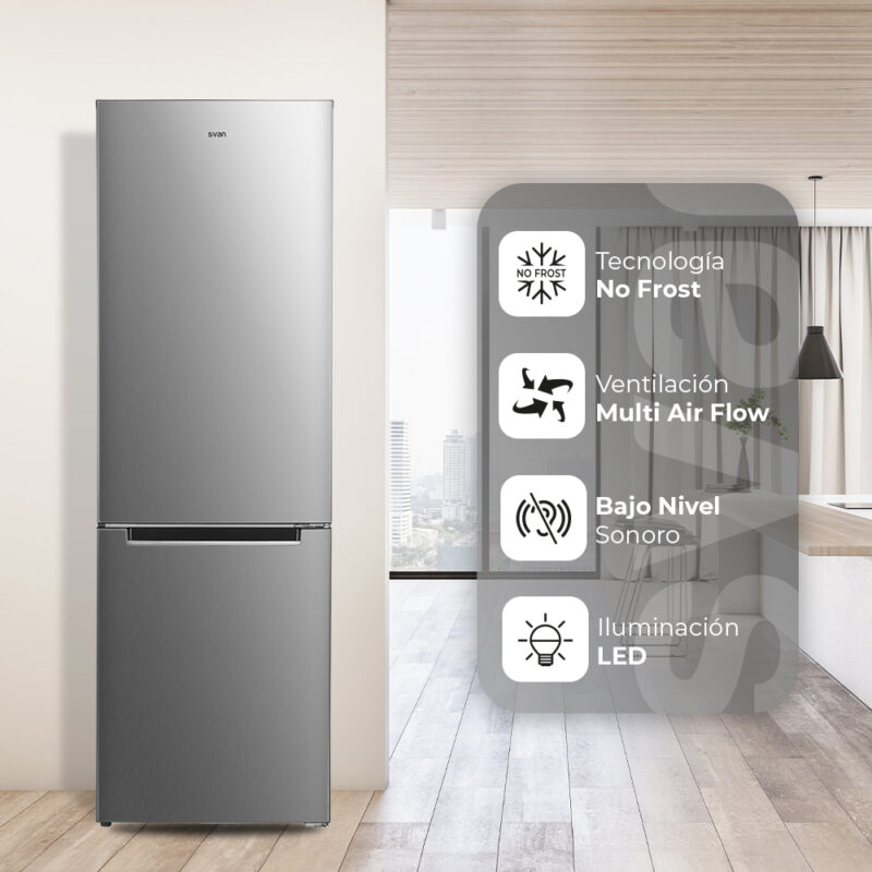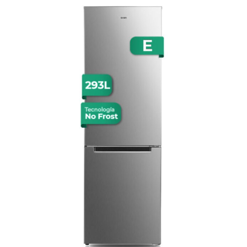 Frigorífico Combi Svan, No Frost. Clase E. Dimensiones: 185cm 60cm 60cm. Color Inox, Control Manual.