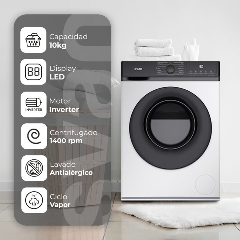 Lavadora carga frontal de Svan modelo SL10400AIDV.
