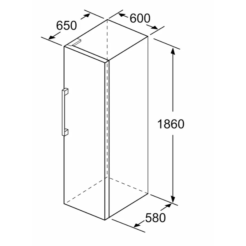 Dimensiones del aparato (alto x ancho x fondo sin tirador): 186 x 60 x 65 cm