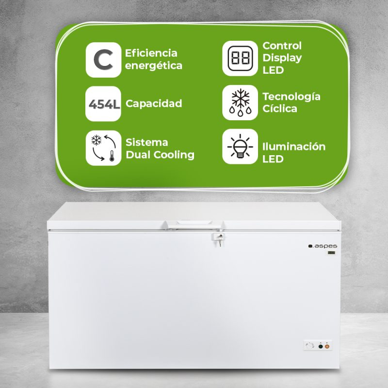 Congelador horizontal Aspes Dual Cooling 454L C 84cm 149,2cm 74,3cm Blanco Display 2C