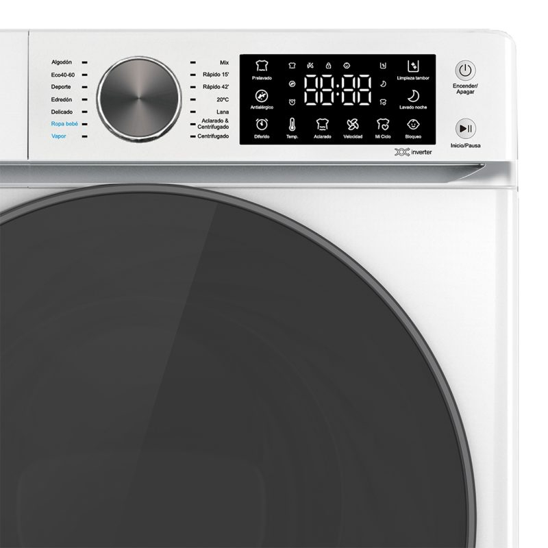 Lavadora carga frontal de Aspes modelo AL12400CIDVB. Lavadora con capacidad de carga 12 kg y una velocidad máxima de centrifugado de 1400 rpm. Motor Inverter con eficiencia energética C y nivel sonoro máximo de 76 dB. Estética blanca con puerta XXL oscura, tambor de acero inoxidable con superficie diamante. Sistema de control táctil con Display LED con 14 programas de lavado y funciones para garantizar el mejor resultado y cuidado en tu colada. Dimensiones: 850 x 595 x 640 mm Conoce más acerca de este modelo: – La tecnología Inverter del motor destaca por su eficiencia, durabilidad y confort. En Svan ofrecemos hasta 10 años de cobertura del motor asegurando su alta funcionalidad. – La lavadora cuenta con el Sistema Eco-logic para garantizar un ciclo efectivo y respetuoso con el medio ambiente. A través de unos sensores, detecta automáticamente la cantidad de ropa introducida en el tambor y reestablece la duración y el consumo. – Consigue una limpieza profunda en tu ropa con el programa antialérgico, encargado de eliminar los alérgenos más comunes de las prendas para proteger a las pieles más sensibles. – Con el programa limpieza interior eliminarás los restos de detergente, moho y suciedad que puedan acumularse en el tambor y la puerta. Nuestra recomendación es utilizarlo una vez al mes para preservar la vida útil de la lavadora. – Añade la fase de Vapor al programa para neutralizar los olores y evitar la aparición de arrugas en las prendas. – La función Mi ciclo permite realizar una configuración personalizada del programa y guardarla para reutilizarlos de uevo rápidamente. – Con la función Inicio Diferido será la lavadora quien se adapte a ti. Podrás programar el ciclo para que se inicie cuando necesites y estén las prendas listas en el mejor momento. – Gracias a la función Stop&ampGo podrás añadir esa prenda olvidada. Simplemente, pausa el programa y , tras seleccionar de nuevo la función, este se reanudará justo donde se quedó. Características Tipo instalación: Libre instalación Nivel sonoro: 76dB Color puerta: Oscuro Color general: Blanco Eficiencia energética nivel sonoro: B Tipo carga: Frontal Eficiencia energética lavado: C Tipo dispensador detergente: Manual Color marco: Cromado Velocidad centrifugado (máx.): 1400rpm Capacidad carga lavado: 12kg Panel control: Display LED táctil Eficiencia energética centrifugado: B Nº programas lavado: 14 Tipo tambor: Diamante Material tambor: Acero inoxidable Volumen tambor: 72L Tipo bloqueo puerta: Electromagnético Tipo chasis: Estándar Wifi: No Dimensiones y pesos Alto embalaje: 890mm Alto producto: 850mm Ancho embalaje: 660mm Ancho producto: 595mm Fondo embalaje: 710mm Fondo producto: 640mm Peso bruto: 80kg Peso neto: 76kg Volumen: 0,42m3 Diámetro puerta int.: 300mm Diámetro puerta ext.: 520mm Rendimiento Frecuencia: 50Hz Voltaje (máx.): 240V Potencia: 2000W Presión agua (máx.): 1MPa Presión agua (mín.): 0,03Mpa Consumo energía ciclo ECO: 72kwh/100ciclos Consumo energía apagado: 0,5W Consumo energía modo reposo: 4W Porcentaje agua restante tras centrifugado: 74% Duración programa Eco: 4:00h:min Consumo agua ciclo ECO: 55L/ciclo Funciones Bloqueo control: Sí Stop&Go (pausa): Sí Inicio diferido: Sí Antialérgico: Sí Botón On/Off: Sí Cancelación centrifugado: Sí Indicador anomalías : Sí Indicador tiempo restante: Sí Prelavado: Sí Mi Ciclo (memoria): Sí Selección temperatura : Sí Selección velocidad centrifugado: Sí Limpieza tambor: Sí Programas Lavado - Rápido 15': Sí Lavado - Rápido 45': Sí Lavado - Ropa bebé: Sí Lavado - Ropa deporte: Sí Lavado - Vapor (Steam Assist): Sí Centrifugado: Sí Lavado - Algodón: Sí Lavado - Algodón 20ºC: Sí Aclarado + centrifugado: Sí Lavado - Eco 40-60ºC: Sí Lavado - Delicado / Lavado a mano: Sí Lavado - Lana: Sí Lavado - Edredón: Sí Lavado - Mixto: Sí Protecciones Protección IEC: Clase I Protección eléctrica: IPX4 Eco-Logic System: Sí Control antibalanceo: Sí Control antiespuma: Sí