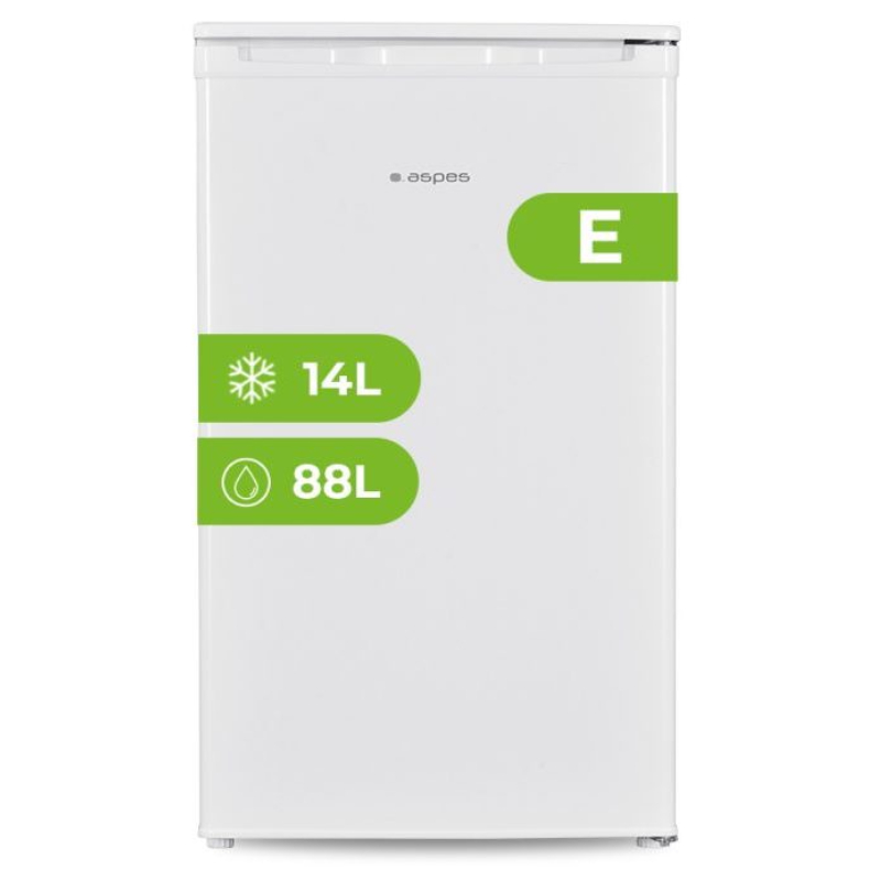 Refrigerador de tecnología cíclica, con motor universal y gas R600a. Eficiencia energética E y nivel sonoro máximo de 40 dB.