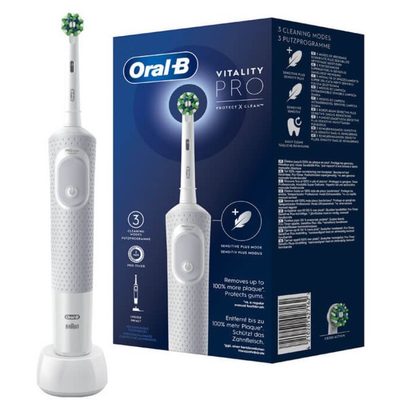 El cepillo de dientes eléctrico recargable Oral-B Cepillo Eléctrico Vitality Pro Blanco ofrece una limpieza clínicamente probada más intensa que un cepillo