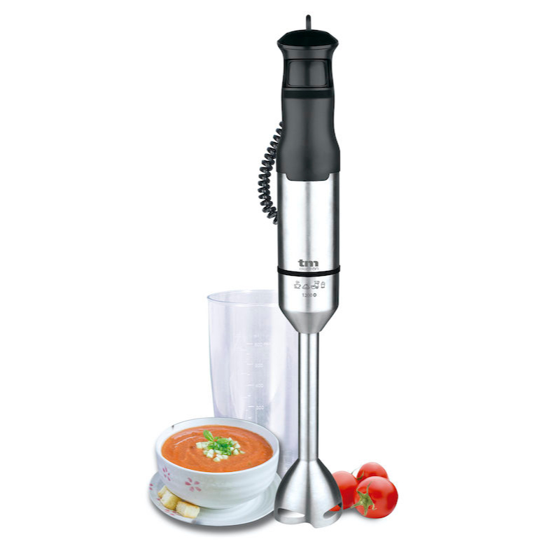 Batidora de mano con 1200W de potencia, campana y eje de acero inoxidable, empuñadura ergonómica con control de potencia TM Electron.