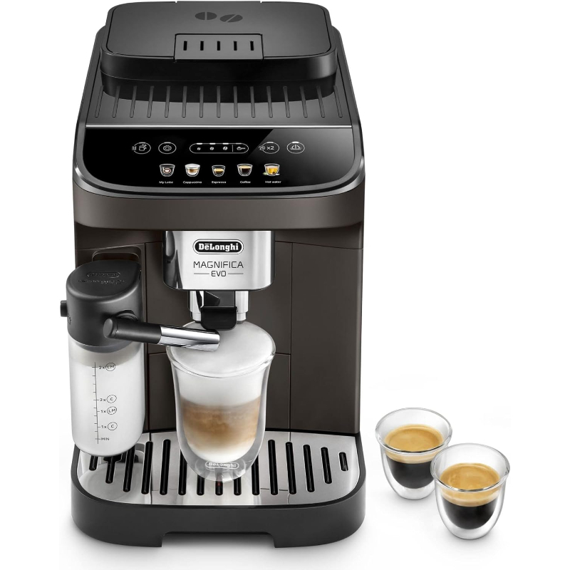 Sirve el espresso italiano perfecto u otras bebidas de café y leche con la cafetera Superautomatica con molinillo integrado de De'Longhi ECAM 290.61.B Magnifica Evo con Molinillo integrado de color negro. Disfruta de la textura sedosa de una espuma de leche compacta y cremosa gracias al sistema LatteCrema.