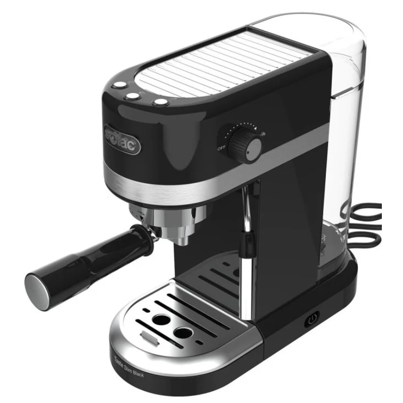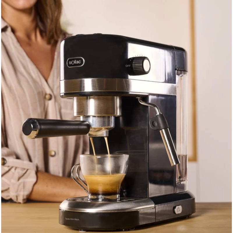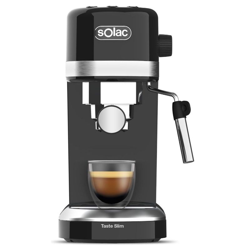 Disfruta de un delicioso café de excelente calidad y consistencia con la cafetera espresso de Solac Taste Slim Black. Una cafetera con elevadas prestaciones que permiten conseguir el café más cremoso y con un sabor y aroma mejorados gracias a su bomba italiana de 20 bar y su sistema de calentamiento avanzado por thermoblock.