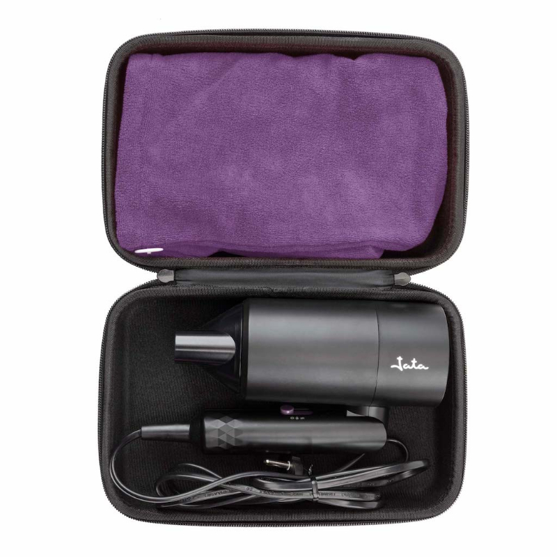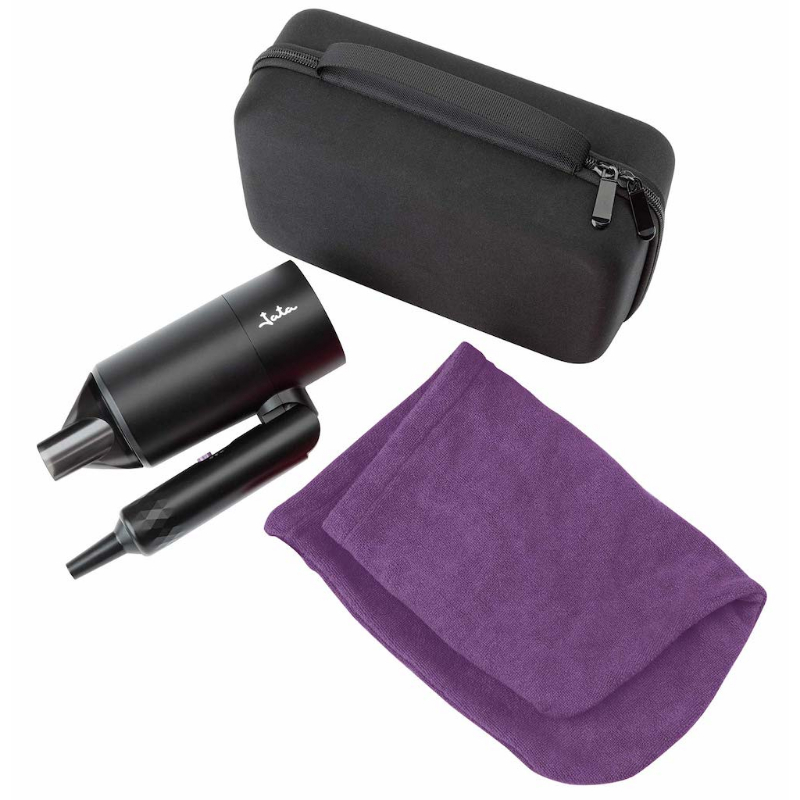 Con el secador plegable JBSC1430 conseguirás lucir un cabello siempre perfecto, estés donde estés. Además, incluye toalla turbante y estuche para guardarlo de forma fácil