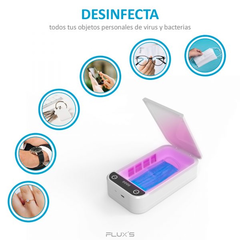 Esterilizador Ultravioleta UVC, Desinfectante, Elimina el 99.9 % de virus y bacterias, para mascarillas, teléfonos, relojes, anillos, Incluye puerto USB de carga y función de aromaterapia.