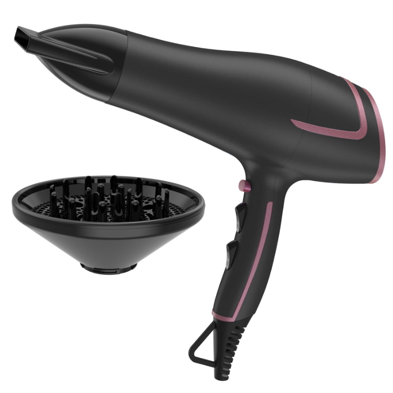 Secador con gancho de goma para permitir colgarlo.