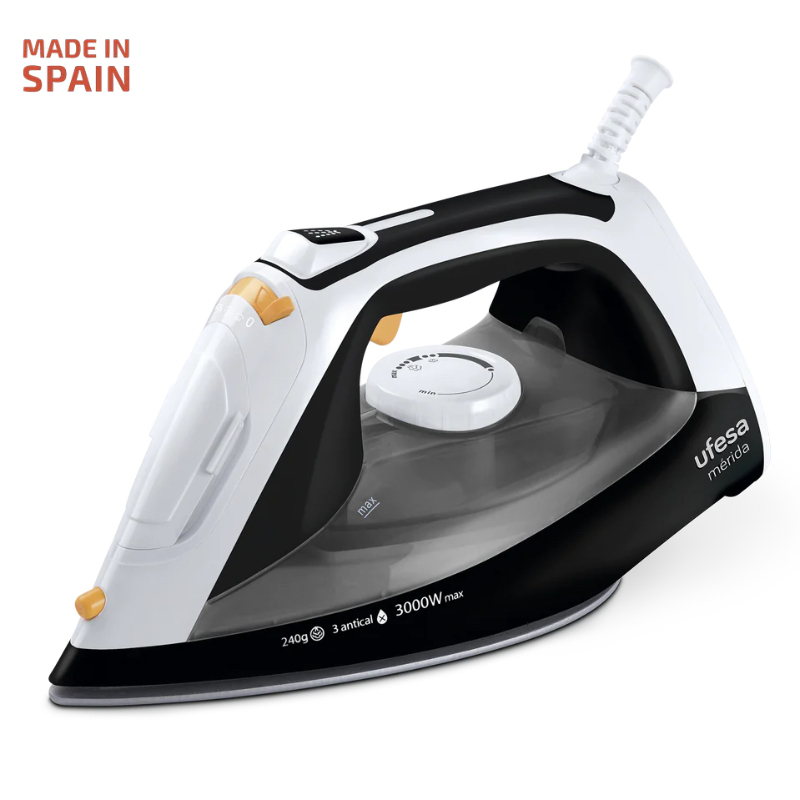 Con la plancha de vapor Mérida dispones de 3000W de potencia para el planchado más cómodo para toda tu ropa. Además, cuenta con un golpe vapor de 240gr y vapor constante de 45gr/min. Podrás planchar con vapor o en seco e incluso en vertical con esta plancha fabricada en España.