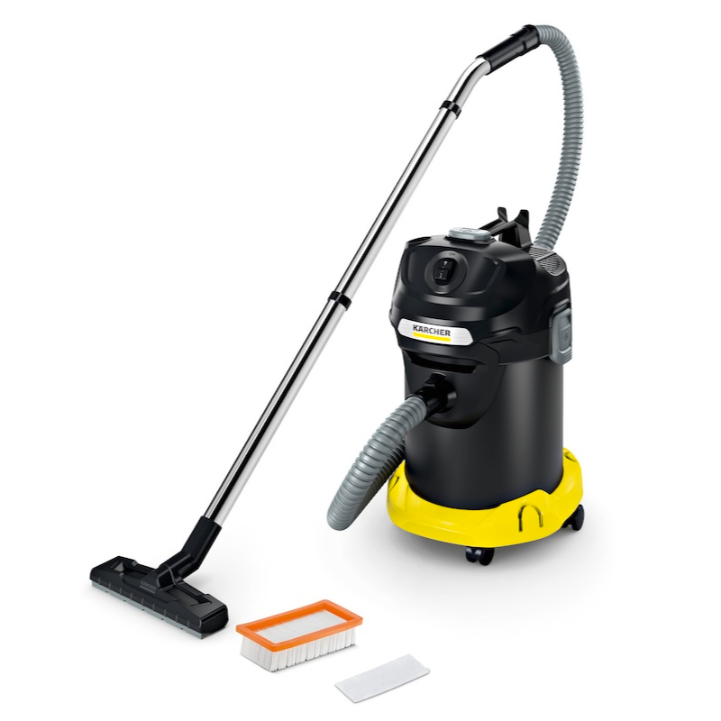 La aspiradora en seco y de ceniza AD 4 Premium con una turbina de 600 vatios y un filtro de aire de salida destaca por su potencia de aspiración alta y duradera. Su sistema integrado de limpieza de filtro desatasca el filtro saturado con solo pulsar un botón, lo que aumenta la potencia de aspiración en un abrir y cerrar de ojos. Para el vaciado rápido y cómodo del depósito para la suciedad sin contacto con la suciedad, se utiliza el sistema de filtro de 1 pieza (con robusto filtro plegado plano y filtro metálico para suciedad gruesa), así como la práctica asa del depósito. Además, el material ignífugo de alta calidad proporciona la máxima seguridad a la hora de recoger ceniza. El tubo manual biselado permite absorber por completo y con toda comodidad los residuos de ceniza, incluso en rincones y puntos de difícil acceso de la chimenea. Junto con la boquilla para suelos incluida en el equipo de serie para la limpieza de suelos duros y el tubo de aspiración cromado de alta calidad, la AD 4 Premium puede utilizarse como eficaz aspiradora en seco en todas partes. También muy práctico: el compartimento de almacenaje para el cable y la posición de apoyo de la manguera de aspiración o el tubo de aspiración con boquilla para suelos, útil en caso de interrupción del trabajo.