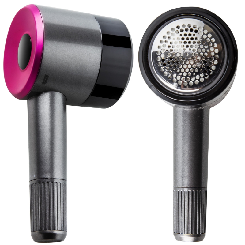 Quitapelusas con un diseño elegante de color gris antracita y rosa magenta.