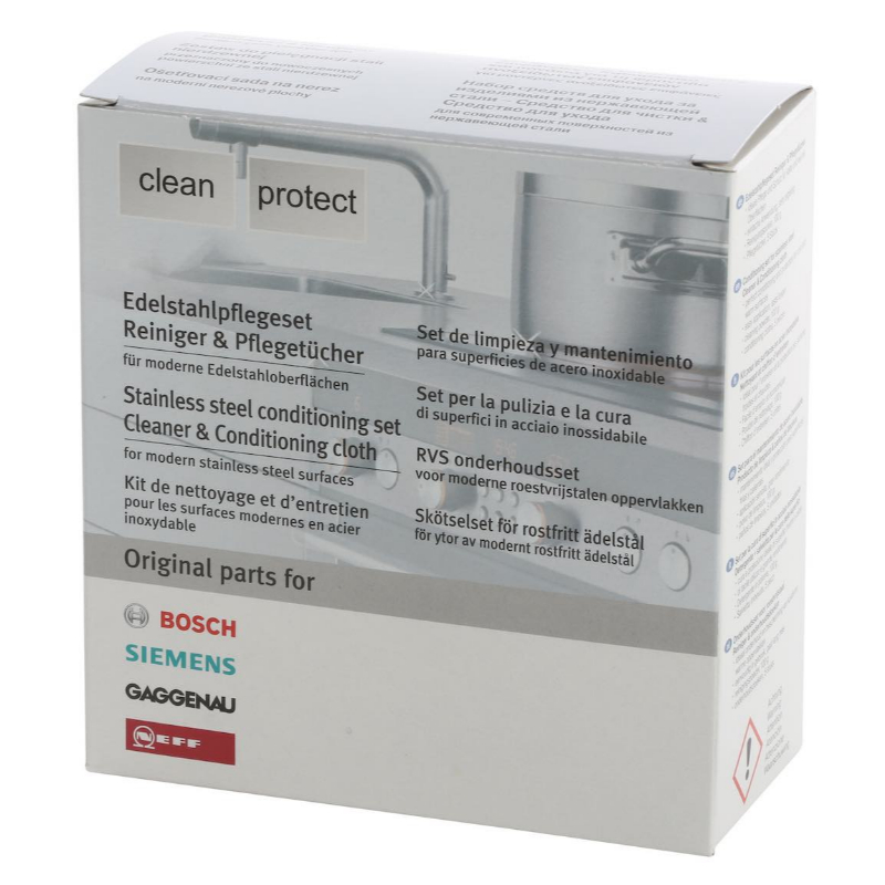 Set de limpieza para el cuidado del acero inoxidable.