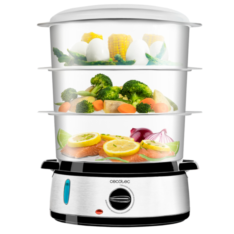Vaporera eléctrica para cocinar al vapor de forma rápida y saludable, conservando todos los nutrientes y vitaminas.