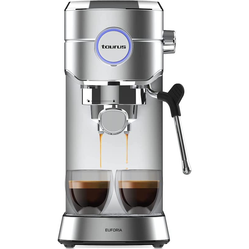 Disfruta de todo el aroma y el sabor intenso de un buen café con la cafetera Euforia de Taurus y su bomba italiana de 20 bar de presión. Dispone de 1450W de máxima potencia.