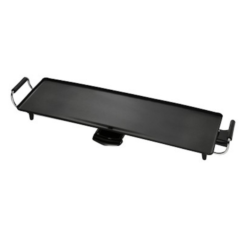 Plancha antiadherente de 70x23 cm con una superficie lisa.