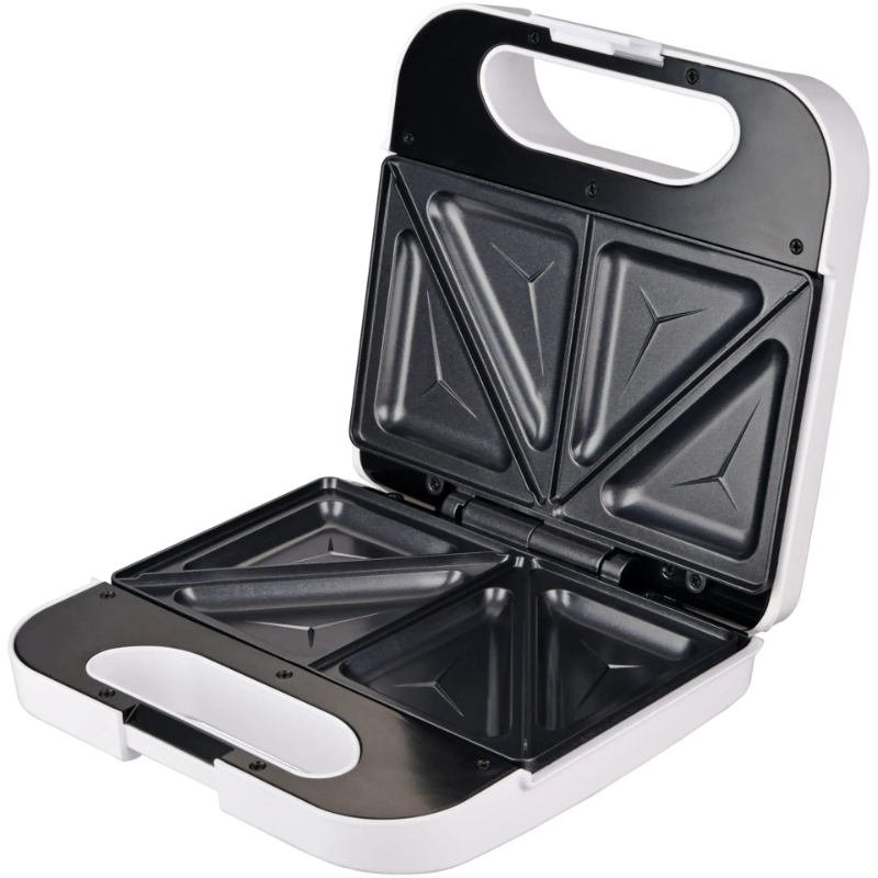 Potente y eficiente: Con una potencia de 750W, la sandwichera SAN-CCBL de Grunkel calienta rápidamente tus sándwiches, asegurando una cocción perfecta en poco tiempo. Capacidad doble: Prepara dos sándwiches simultáneamente en su espaciosa superficie de 22,5 x 13 cm, ideal para un desayuno rápido o una merienda compartida. Corte triangular: La superficie de cocción con diseño de corte triangular garantiza que tus sándwiches se dividan perfectamente, facilitando el consumo y dando un toque atractivo. Fácil limpieza: Gracias a su revestimiento antiadherente, la limpieza de la sandwichera es rápida y sin esfuerzo, permitiéndote disfrutar más tiempo de tu comida. Seguro y conveniente: Equipada con base antideslizante y carcasa de tacto frío, esta sandwichera es segura de usar. Las luces indicadoras te informan cuando está encendida y lista para cocinar.