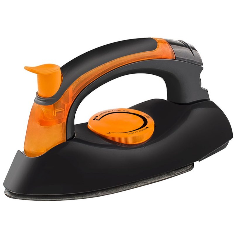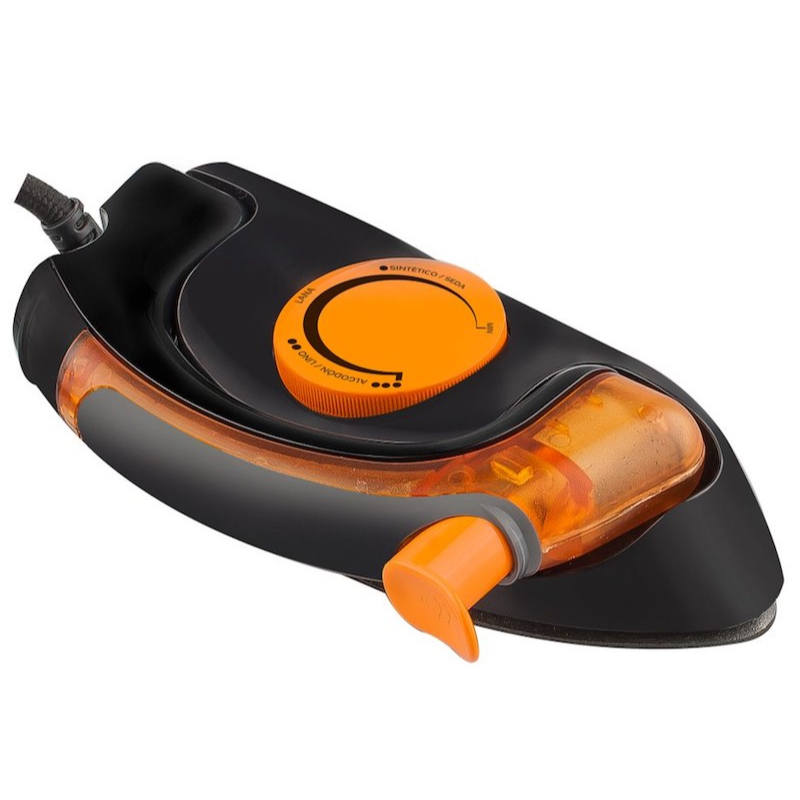 Cuerpo de plástico con acabado en negro, naranja y gris.