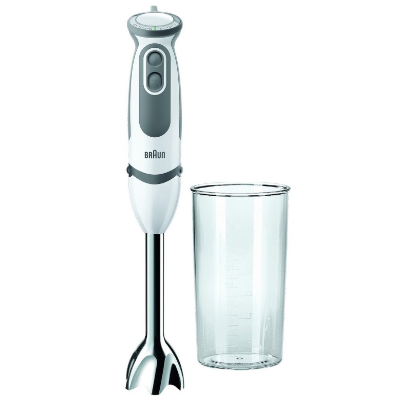 Además, esta batidora de mano de Braun es la más práctica por tener una campana antisalpicaduras patentada de acero inoxidable, un fácil desmontaje compatible con todos los accesorios easy click y un vaso medidor de 600ml calibrado en ml y oz para facilitar la preparación de todas tus sopas y cremas.