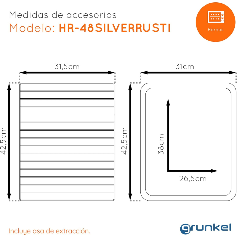 Accesorios: Bandeja lisa, bandeja de rejillas, asa.
