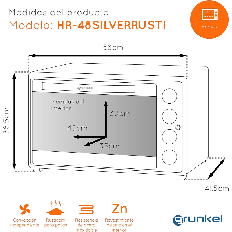 Horno eléctrico con 48 litros de capacidad y resistencia en M
