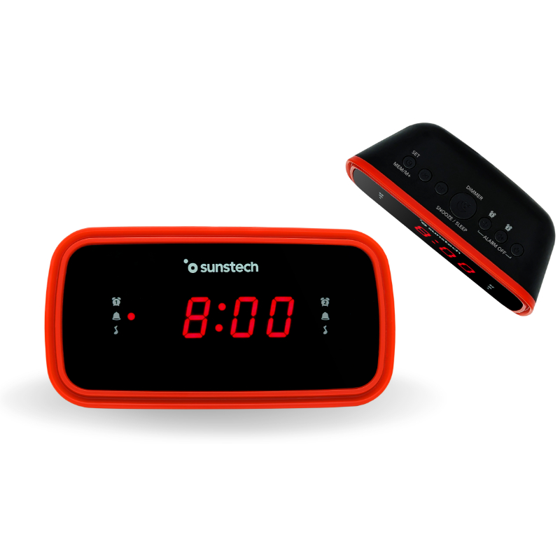 Radio reloj despertador con Radio FM y 10 presintonías. Que no se te pase la hora de despertarte gracias a su función de doble alarma. Con el despertador FRD60, despiértate escuchando tu emisora de radio favorita y empieza el día con energía. Además, incorpora una batería de reserva* que te permitirá conservar los ajustes de hora, alarma y radio en el caso de apagón o cuando sea desconectado de la corriente. Tan solo dos pasos: configúralo y descansa. Con el nuevo radio despertador FRD60 y su interfaz sencilla, establece las alarmas intuitivamente y descansa. ¡Tus mañanas serán más amenas con el nuevo FRD60! *pilas no incluidas