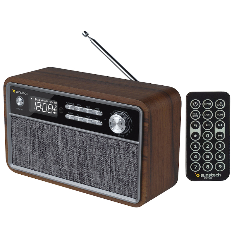 Radio de madera con altavoz integrado y conexión Bluetoorth (v4.2) con la que podrás disfrutar de tu música preferida; además de las mejores emisoras de radio; a través de su puerto USB, lector de tarjetas y conexión auxiliar. Integra la función de manos libres, para que puedas contestar llamadas cómodamente al tener el Smartphone sincronizado. Te ofrecerá un sinfín de posibilidades: des de utilizarla como un sintonizador de radio FM o altavoz Bluetooth con múltiples conexiones (USB, micro SD (TF), conexión aux-in), hasta utilizarla como despertador con doble Alarma. Su acabado simulando la madera de nogal le da un acabado exclusivamente premium muy agradable a la vista que, junto a su diseño compacto, hará que quede perfecta en cualquier rincón de tu hogar.