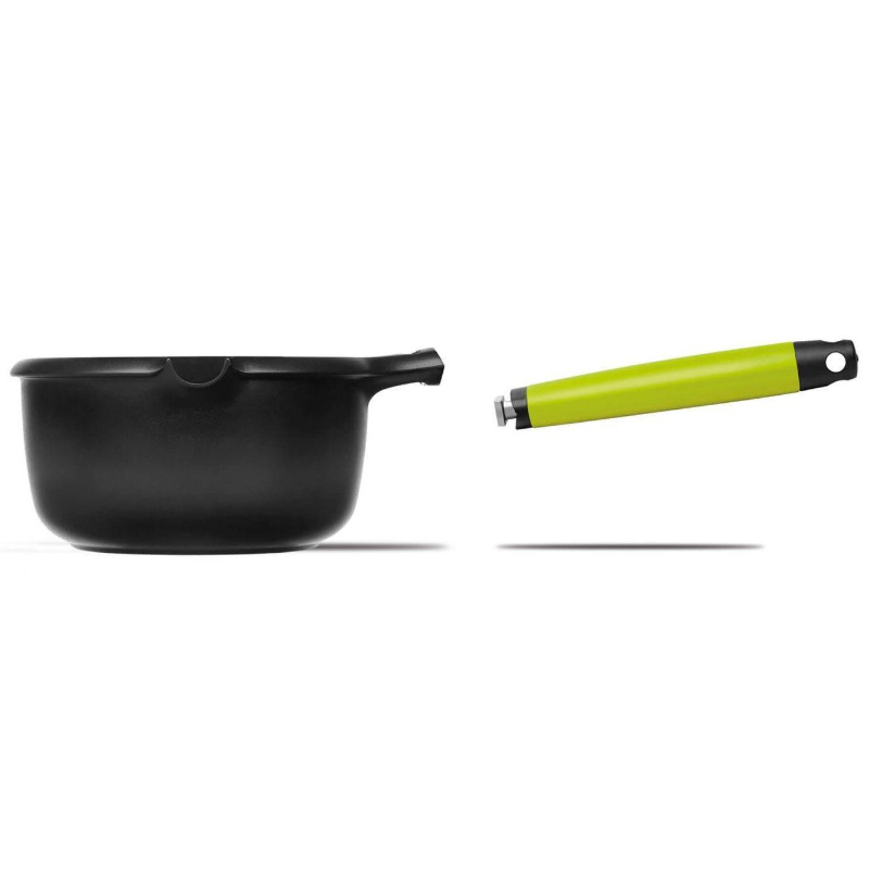 • Mango desmontable para limpiar a mano cómodamente, optimizar espacio en el armario y el lavavajillas, poner y quitar el producto del horno sin quemarse o convertirlo en un molde o cacerola.