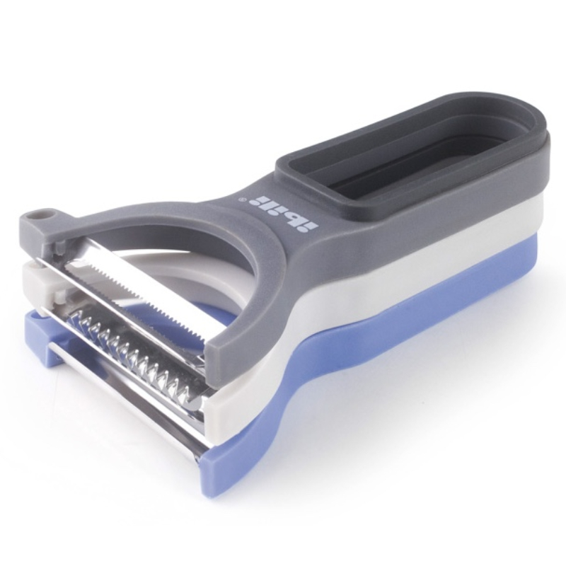 Set de 3 peladores con filo liso, Dentado y corte en juliana. inox/s. y plástico.