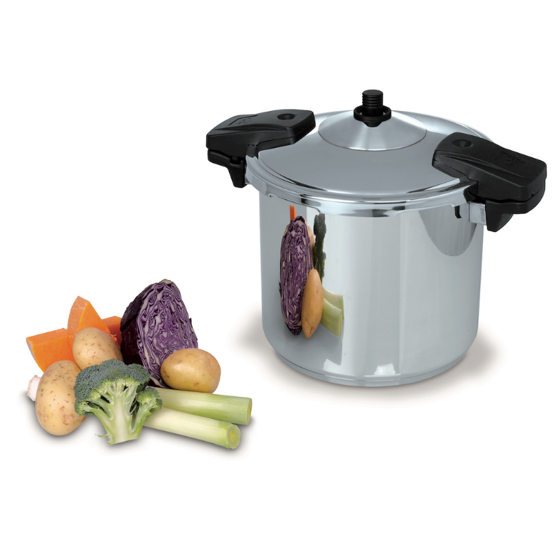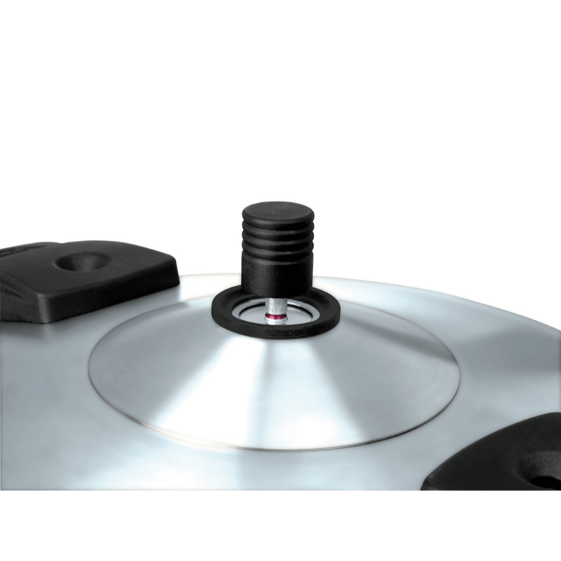 La olla súper rápida modelo OSR con 4 dispositivos de seguridad y válvula de presión estanca cocina en un tercio menos de tiempo que otras ollas convencionales.