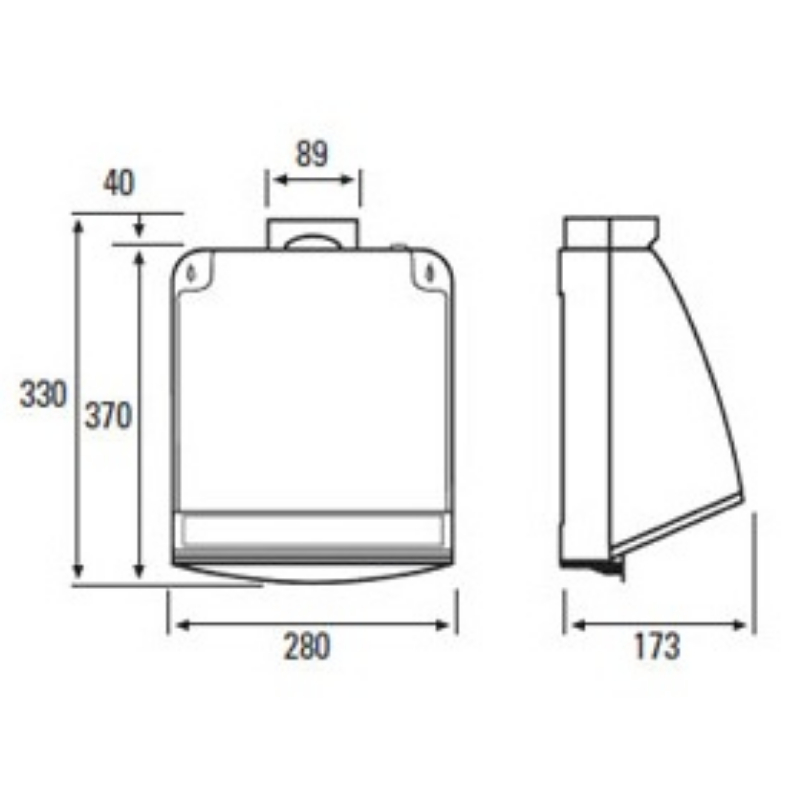 Extractor de cocina fabricado en plástico. Diámetro del tubo: 100 cm. Potencia absorción: 150 W. Caudal absorbido: 450 m3/h. Presión sonora: 57 dB. Medidas: 465x356x235 mm.