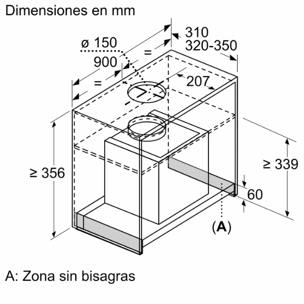 Dimensiones de instalación necesarias (H x W x D): 356mm x 862.0mm x 310mm mm