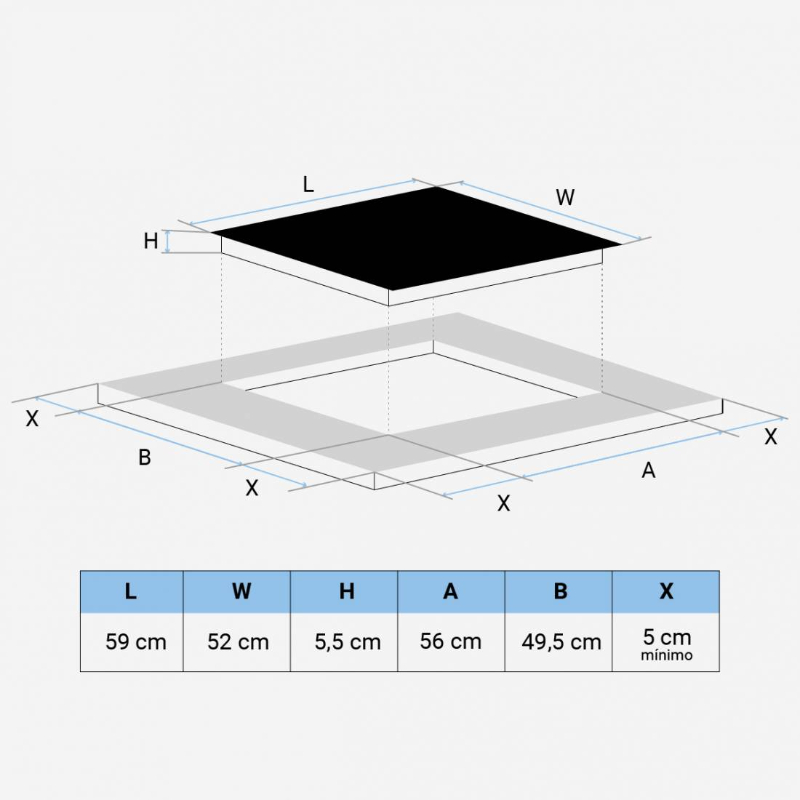 Dimensiones encastre: 56 cm x 48 cm.