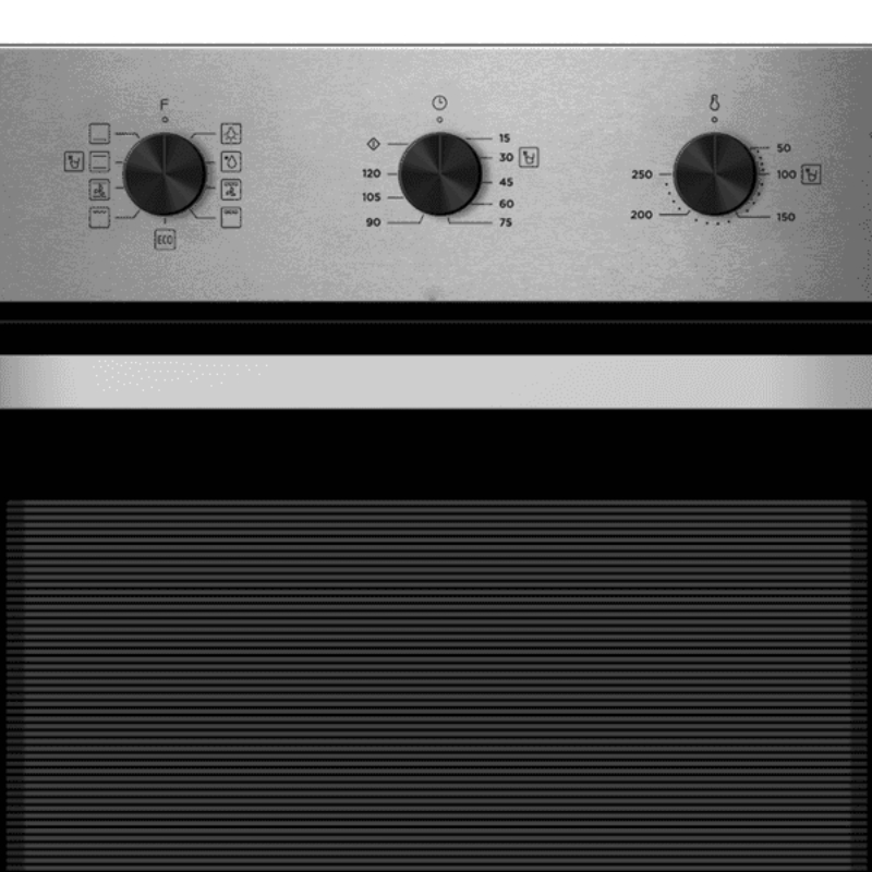 Estética Inox con puerta de doble cristal. Dispone de cavidad en relieve para colocar las bandejas e iluminación interior. Panel de control manual y mandos estándar, con termostato y temporizador mecánico. Ofrece 8 programas de cocción y diversas funciones para obtener el mayor rendimiento y facilitar el proceso de cocción.