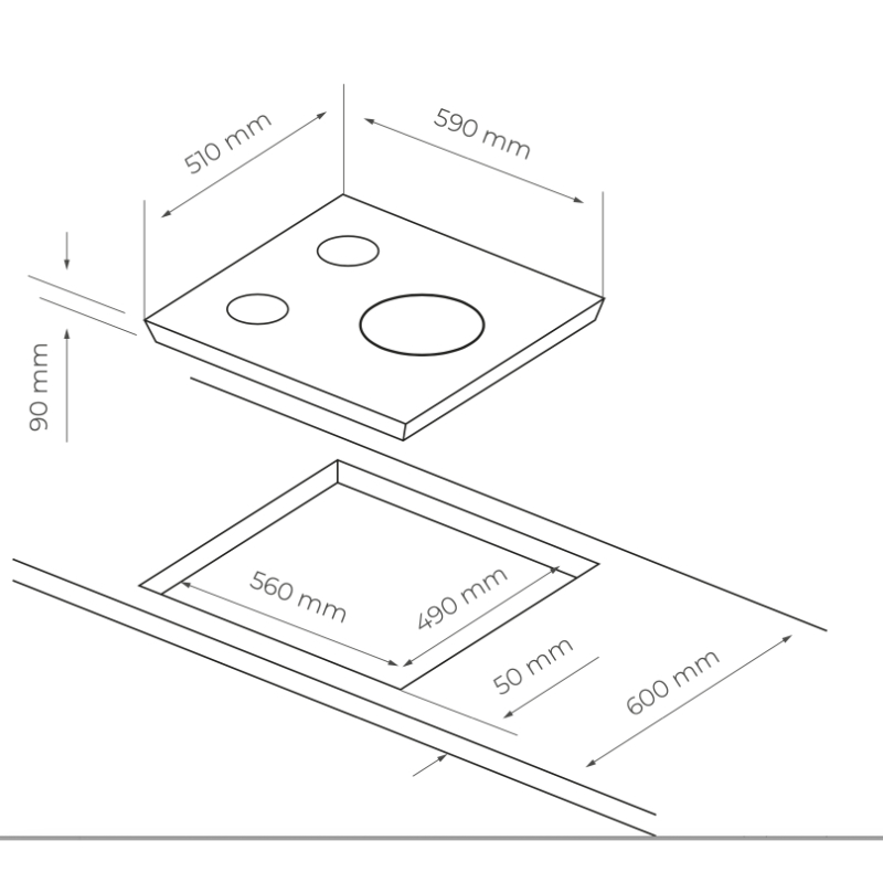 Dimensión encastre: 560 x 490 mm