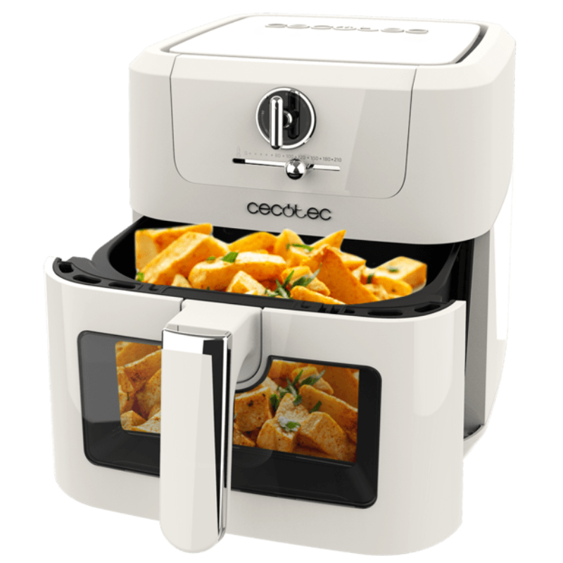 Freidora dietética de 5 L que permite cocinar gran cantidad de alimentos con muy poco aceite. Más sano, igual de sabroso.