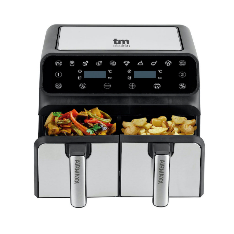 La función SYNC te permite programar ambas cestas con distintos programas para que terminen de cocinar a la vez.