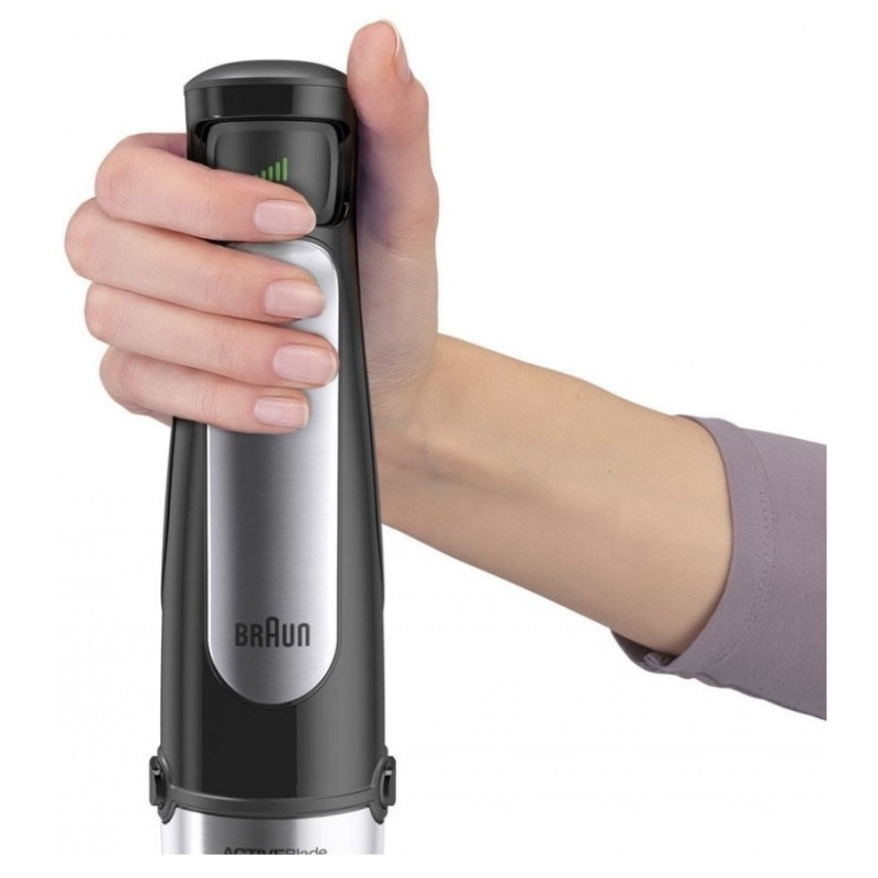 La nueva batidora de mano Minipimer 7 de Braun está diseñada para ayudarte a preparar comidas saludables para tu familia y amigos, de forma rápida y sencilla. Ahora cuenta con la primera tecnología ACTIVEBlade del mundo. Este innovador sistema de cuchillas flexibles proporciona un 250% más de superficie activa de corte activa* - un ingenioso ayudante de cocina para que puedas batir con mayor facilidad. También incluye la nueva tecnología Easy SmartSpeed de Braun, que permite tener el control con un solo toque. Simplemente presiona el botón para ajustar la potencia de forma intuitiva y sin interrupciones. *En comparación con las batidoras de mano Braun sin ACTIVEBlade.