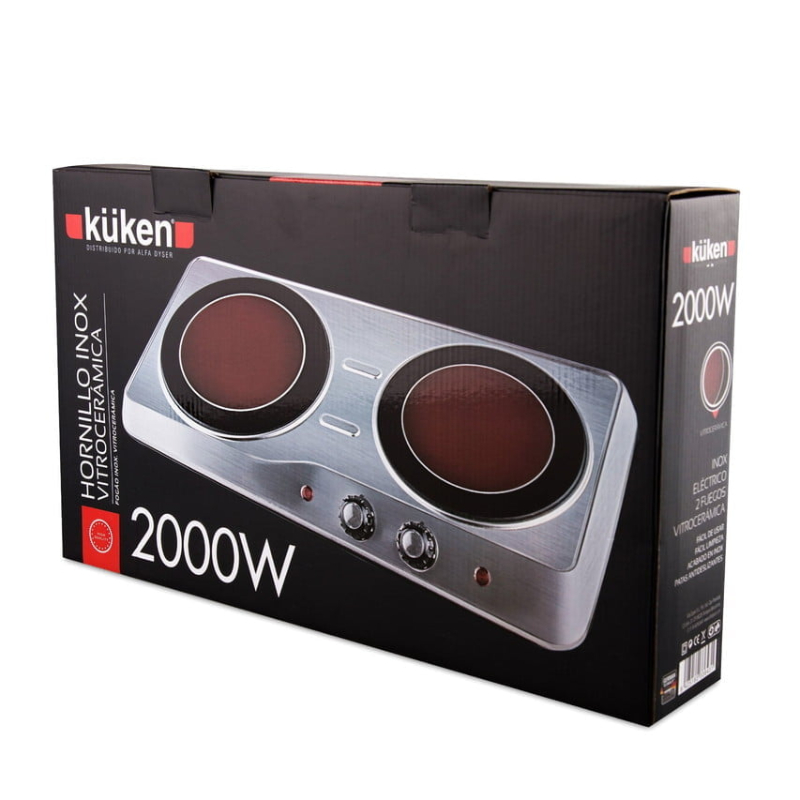 HORNILLO INOX VITRO 2 FUEGOS 2000W KÜKEN