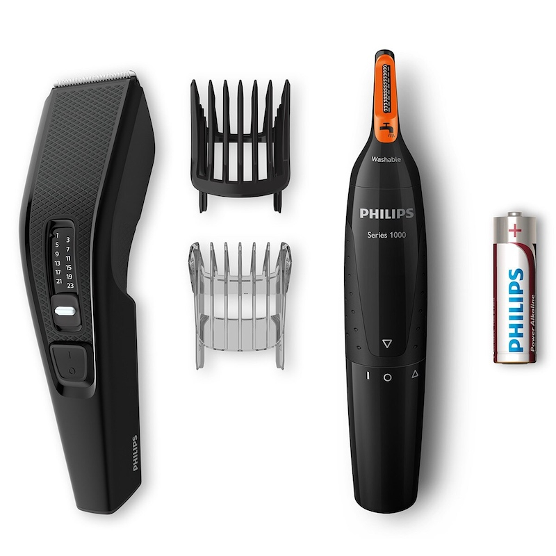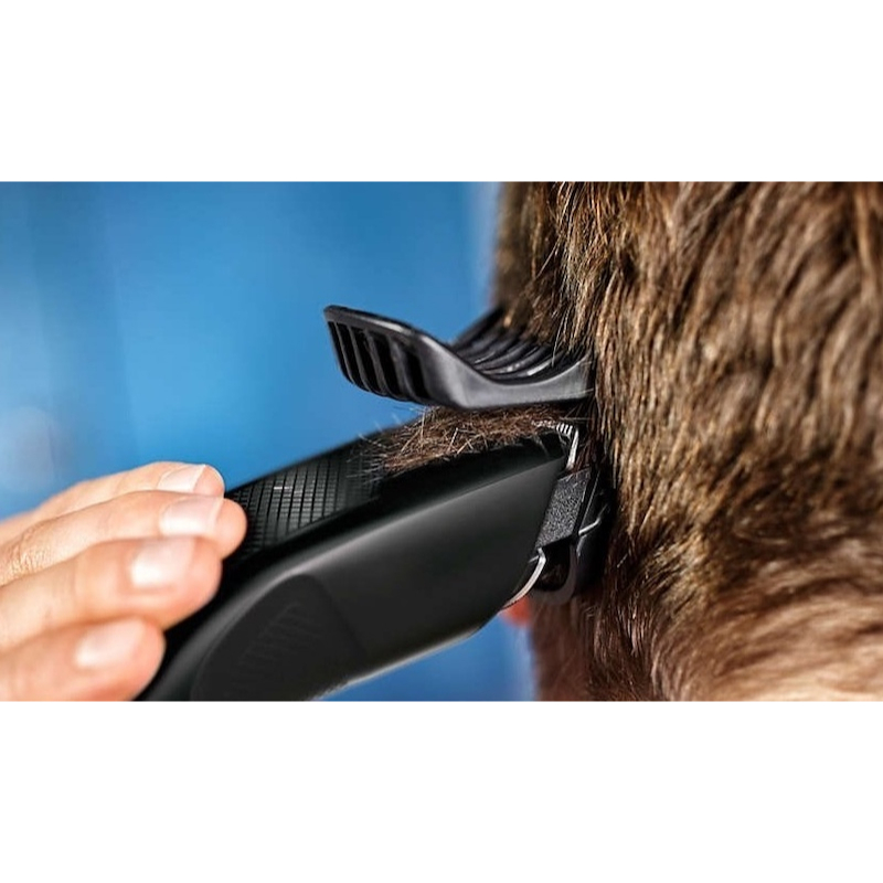 Control de longitud preciso con 13 posiciones de 0,5 a 23 mm. Incluye un peine-guía para barba con 12 longitudes ajustables de 1 a 23 mm.