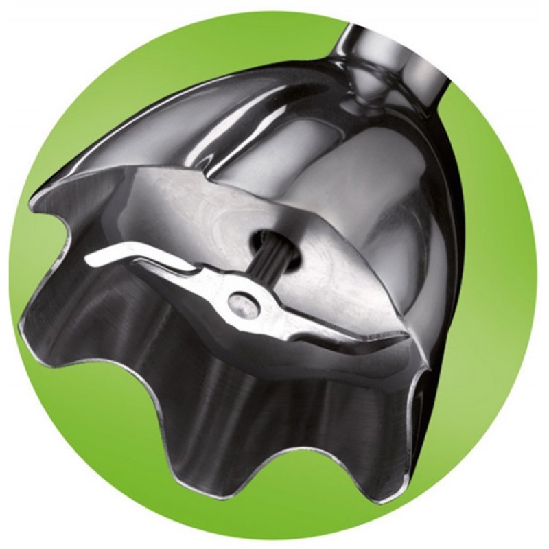 Además, esta batidora de mano de Braun es la más práctica por tener una campana antisalpicaduras patentada de acero inoxidable, un fácil desmontaje compatible con todos los accesorios easy click y un vaso medidor de 600ml calibrado en ml y oz para facilitar la preparación de todas tus sopas y cremas.