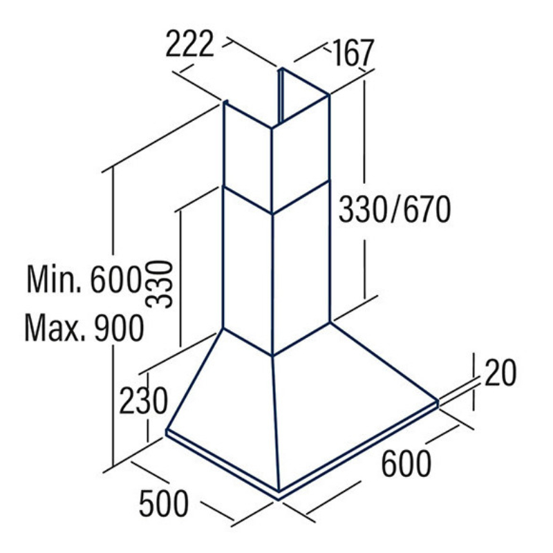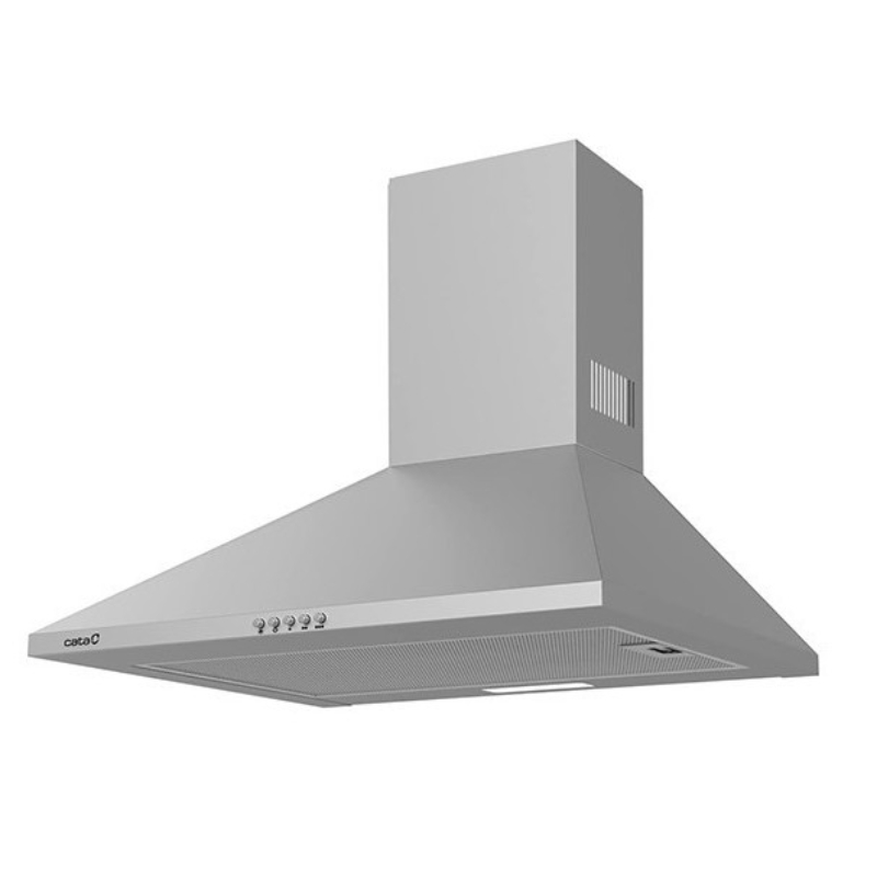 Campana Omega en forma de chimenea está disponible en 4 diferentes tipos de acabado: Inox, Blanco, Negro y Cobre y en 60, 70 y 90 cm salvo el modelo de Cobre que sólo está disponible en 90 cm. Ofrece 3 niveles de extracción con un panel pulsador mecánico. Con una capacidad de extracción en el nivel máximo de 740m3/h. Incorpora 2 lámparas.