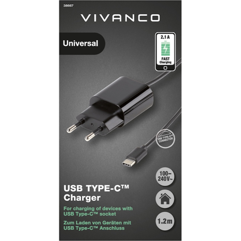 VIVANCO CARGADOR 38667-VVMUSBC USBC 5V 2.1A 1.2m 220V